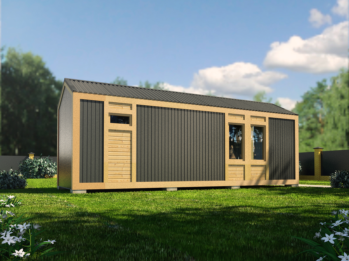 Современная баня Барн-1 со стеклянным фасадом — современная каркасная баня с размером 7х2,3 и площадью 16 м². Этот формат дает удобный баланс между компактной посадкой на участке, комфортной планировкой и полноценным банным отдыхом.