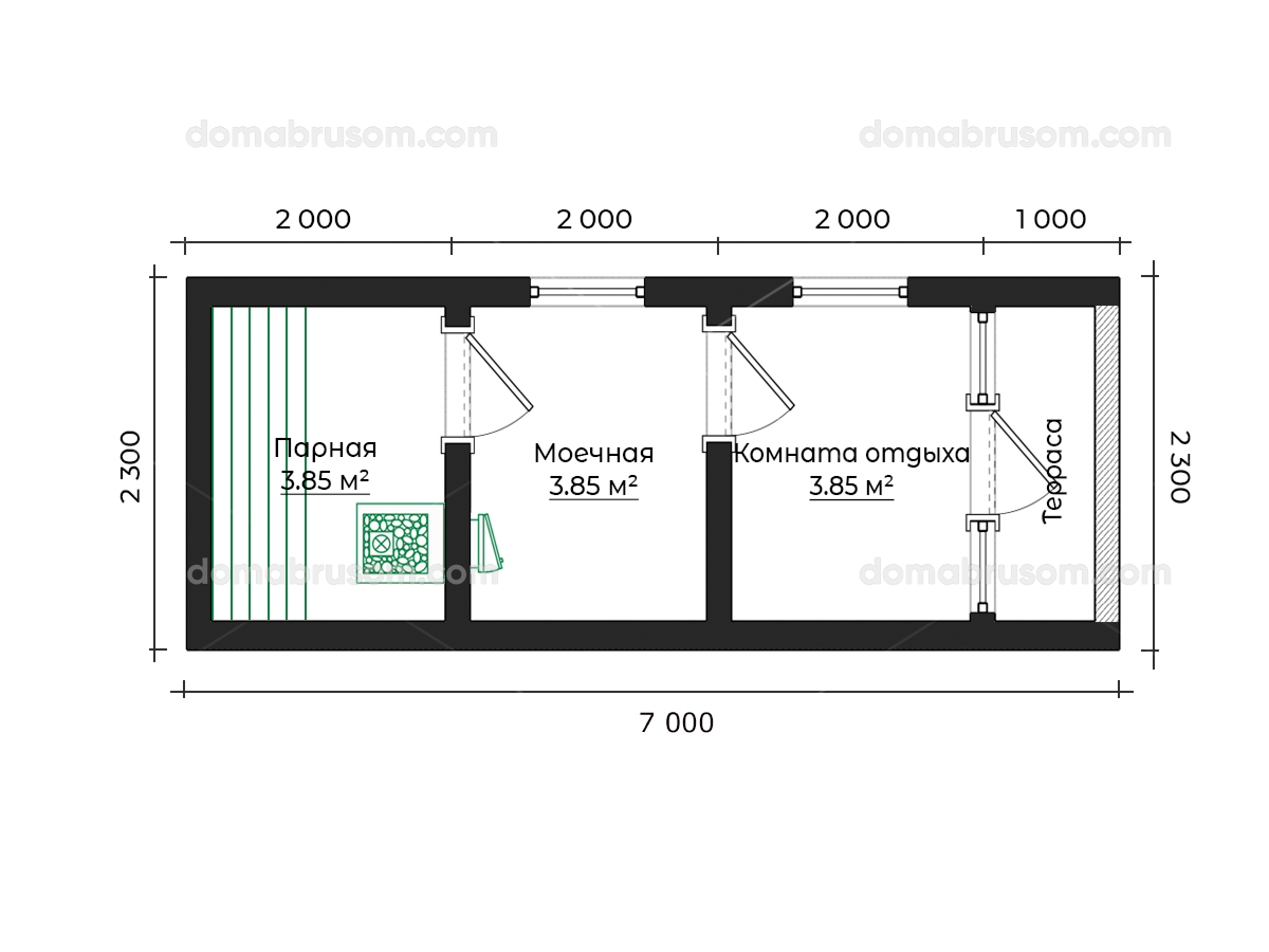 - Силовой каркас и утепленный контур под банный режим эксплуатации.