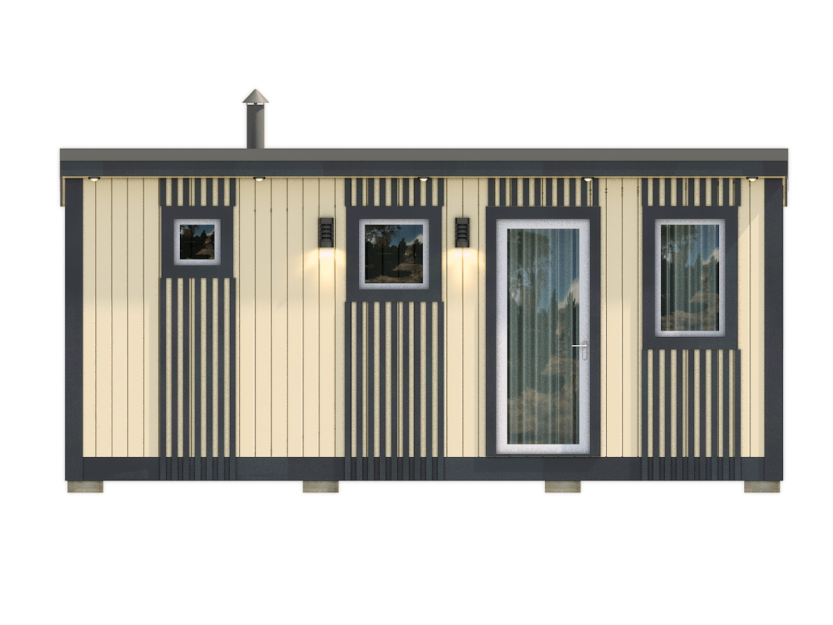 Внутри предусмотрена продуманная планировка: парная, душевая и комната отдыха. Ключевой акцент проекта: автономный душ. Благодаря этому проект подходит и для регулярных коротких прогревов, и для спокойного отдыха в выходные.