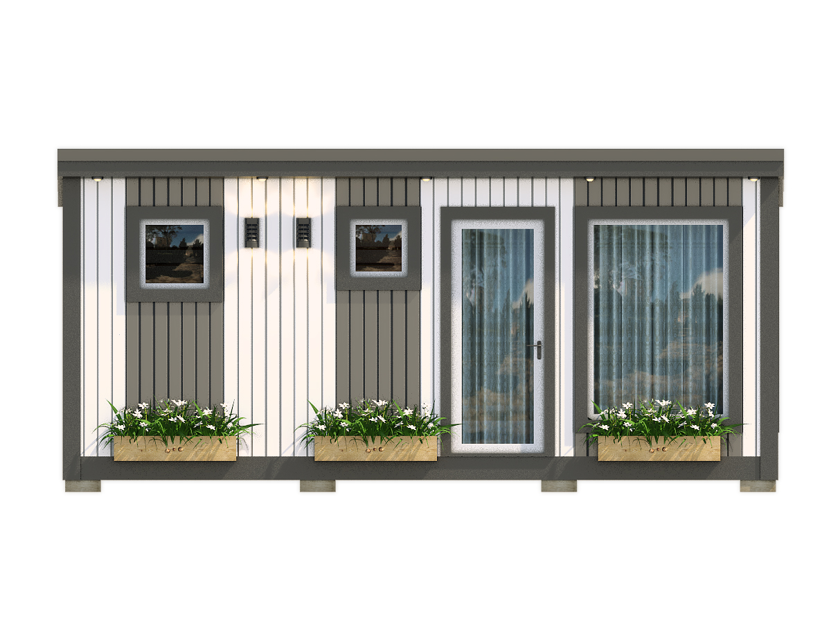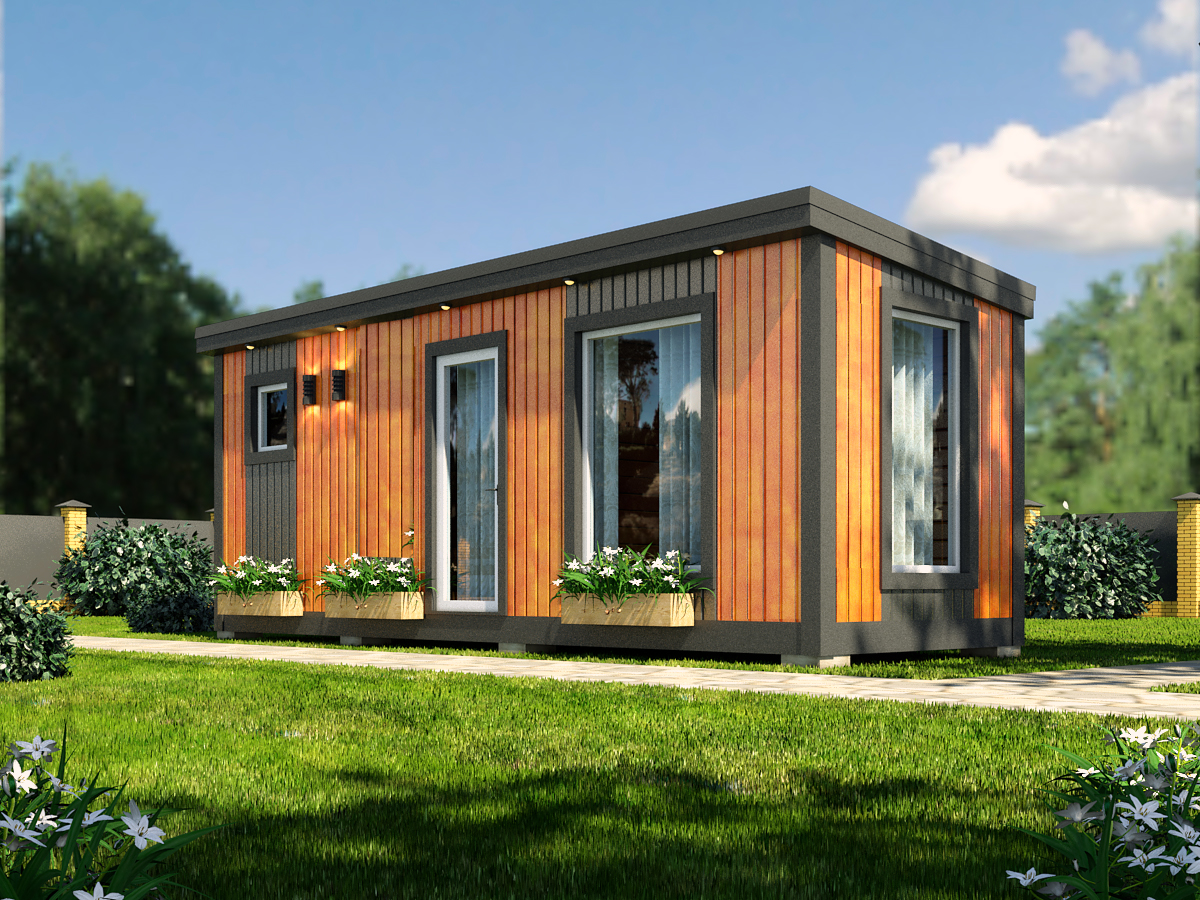 Каркасная баня Лофт-5 с автономным душем — современная каркасная баня с размером 7х2,3 и площадью 16,1 м². Этот формат дает удобный баланс между компактной посадкой на участке, комфортной планировкой и полноценным банным отдыхом.